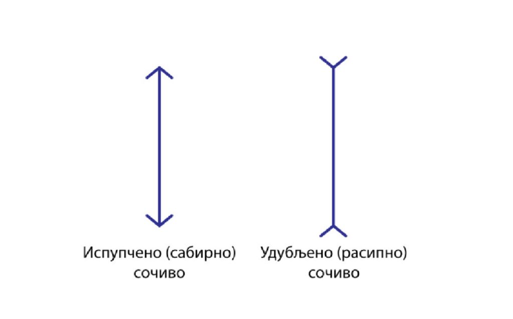 Када се конструише лик и графички приказује сочиво оно се претставља у облику стрелице.